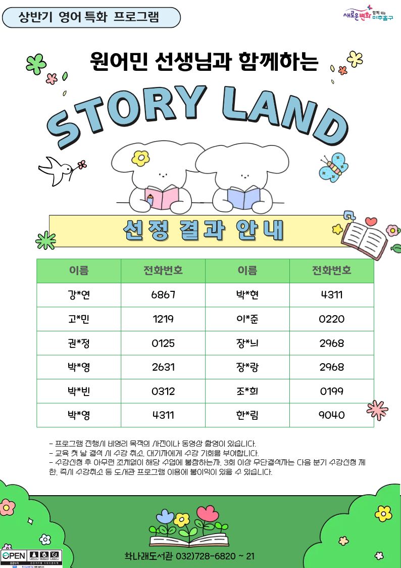 [안내] 2026상반기 특화프로그램 (STORY LAND) 접수결과 안내