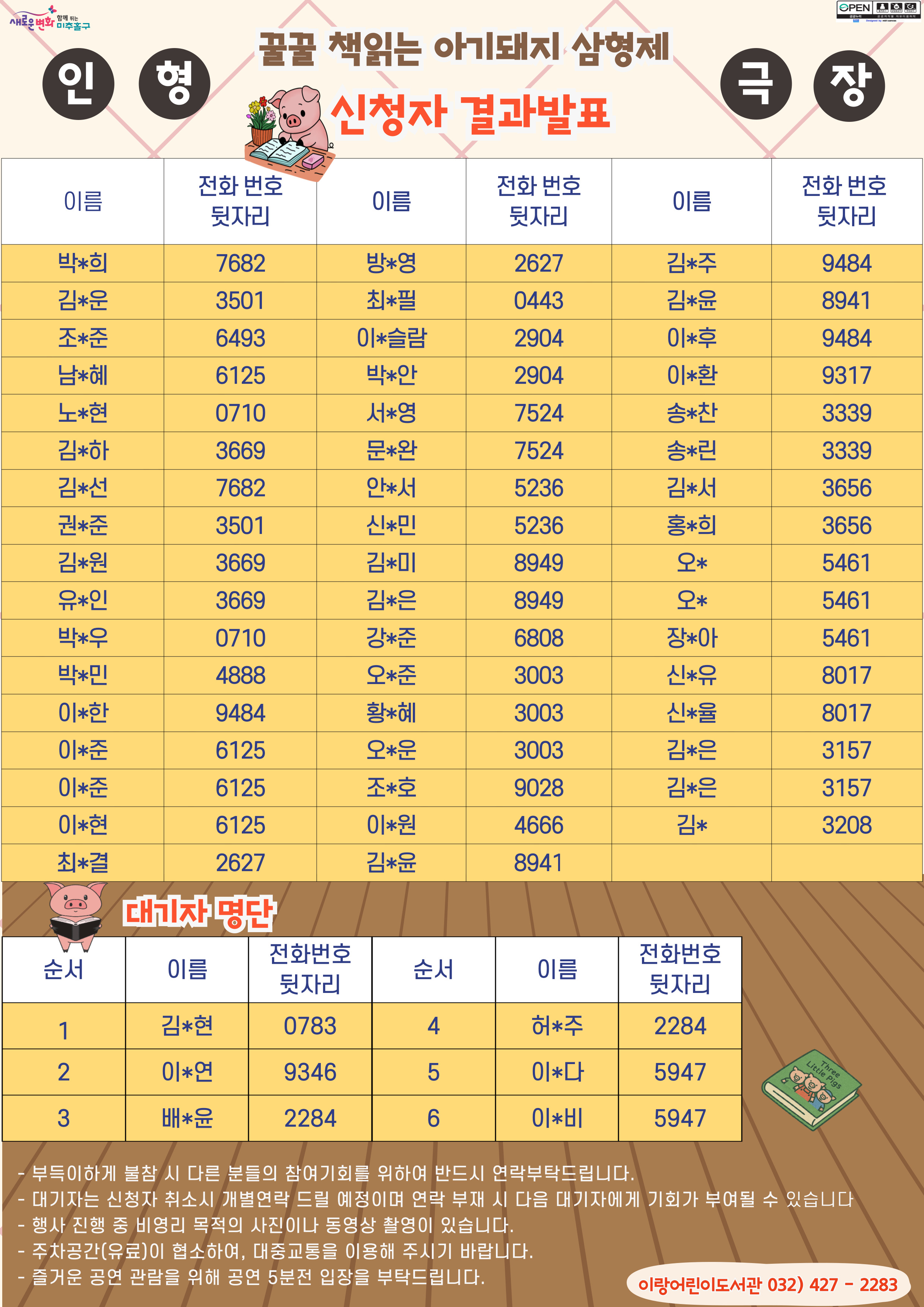 [안내] 2026 이랑도서관 4월 도서관 주간 행사 인형극 선정자 발표
