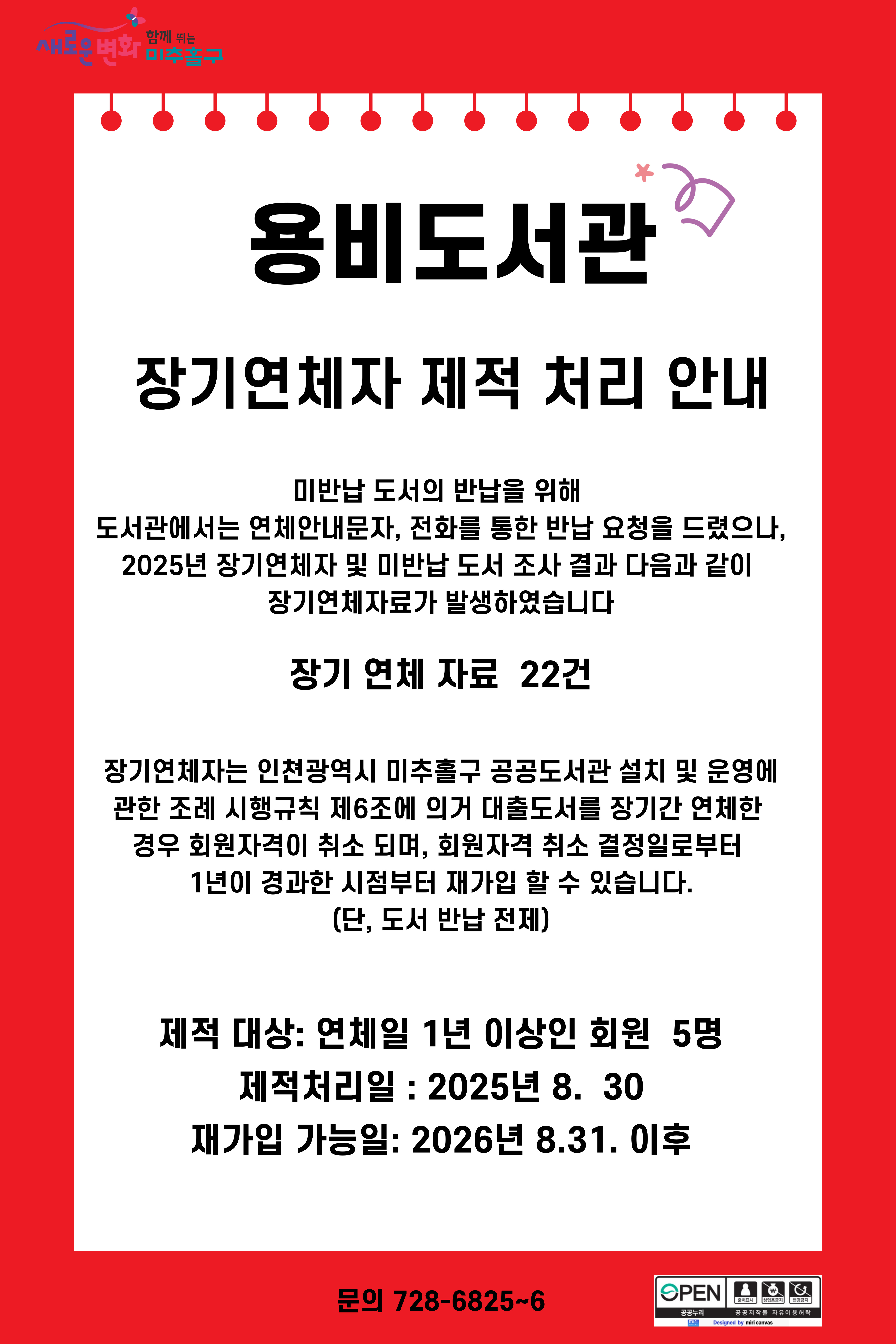 [안내] 용비도서관 도서장기연체자 제적처리 안내