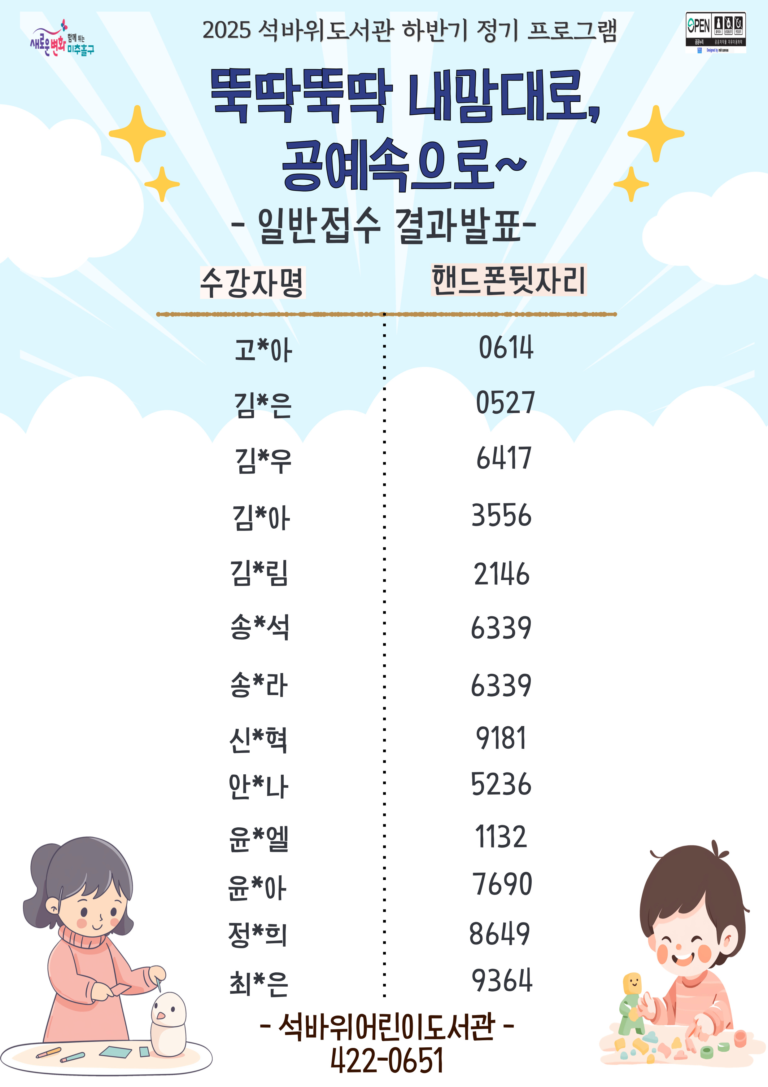 * 프로그램 진행 중 비영리목적으로 사진·동영상촬영이 있을 수 있습니다. * 재료비는 강사님께 직접 이체하셔야 합니다. (추후 개별 안내예정/ 1회 시작 이후에는 환불이 불가합니다.)