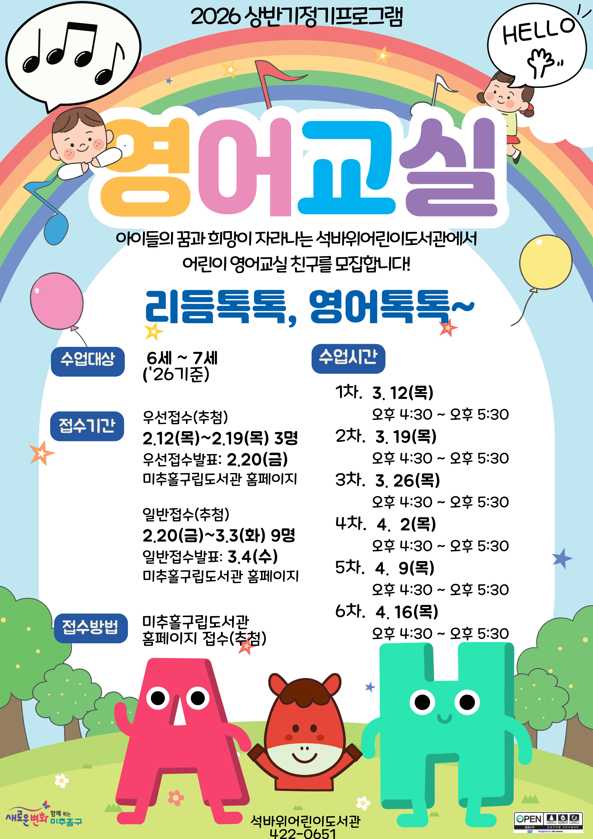 - 대상자: 인천 미추홀구 거주자 및 도서관 회원