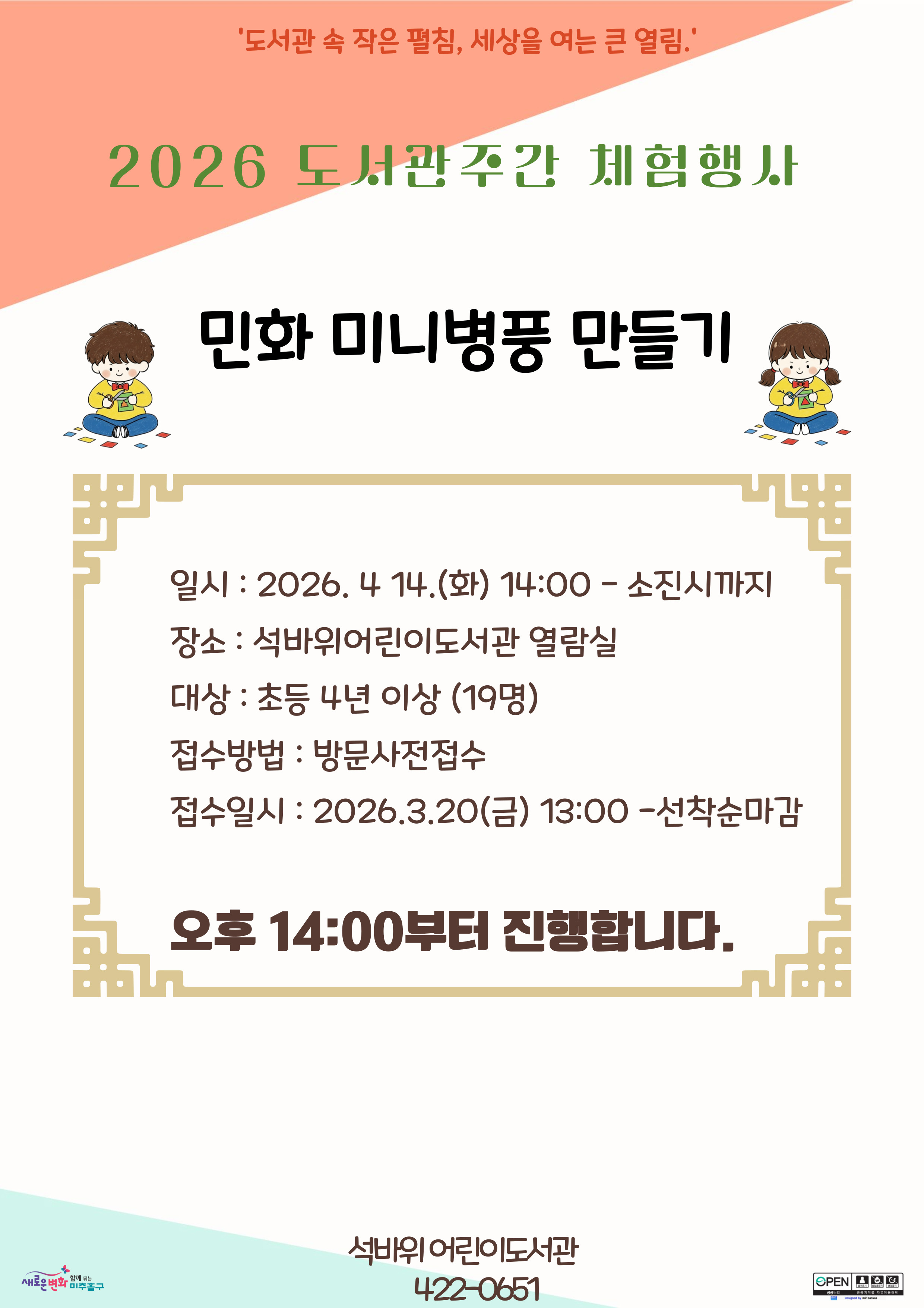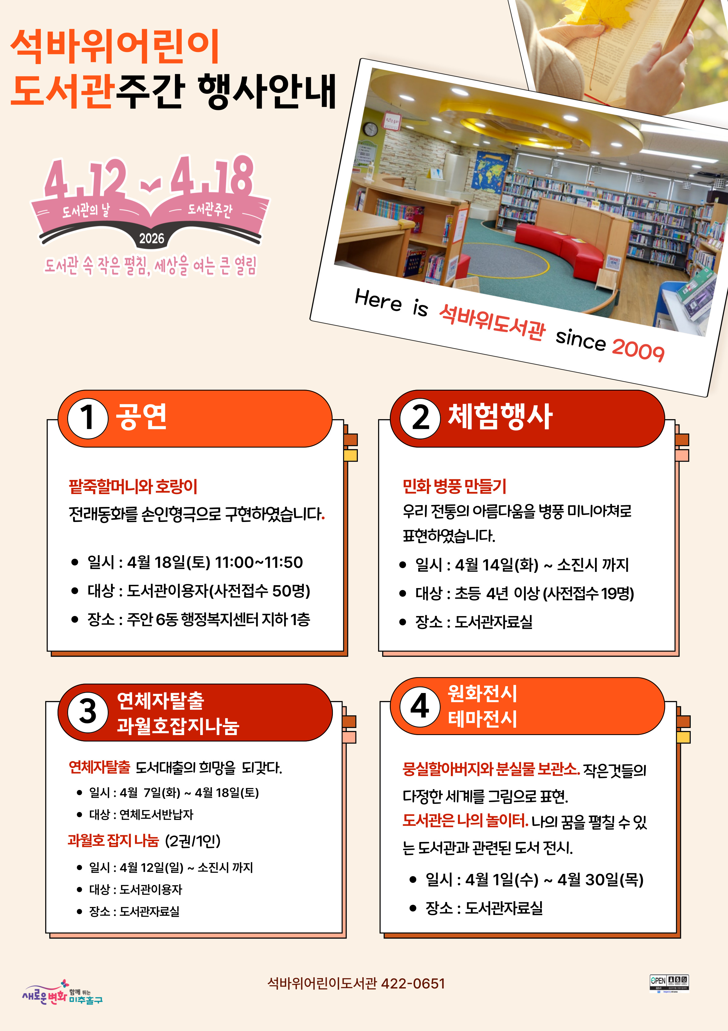 [안내] 2026 석바위도서관 4월 도서관 주간 행사 안내