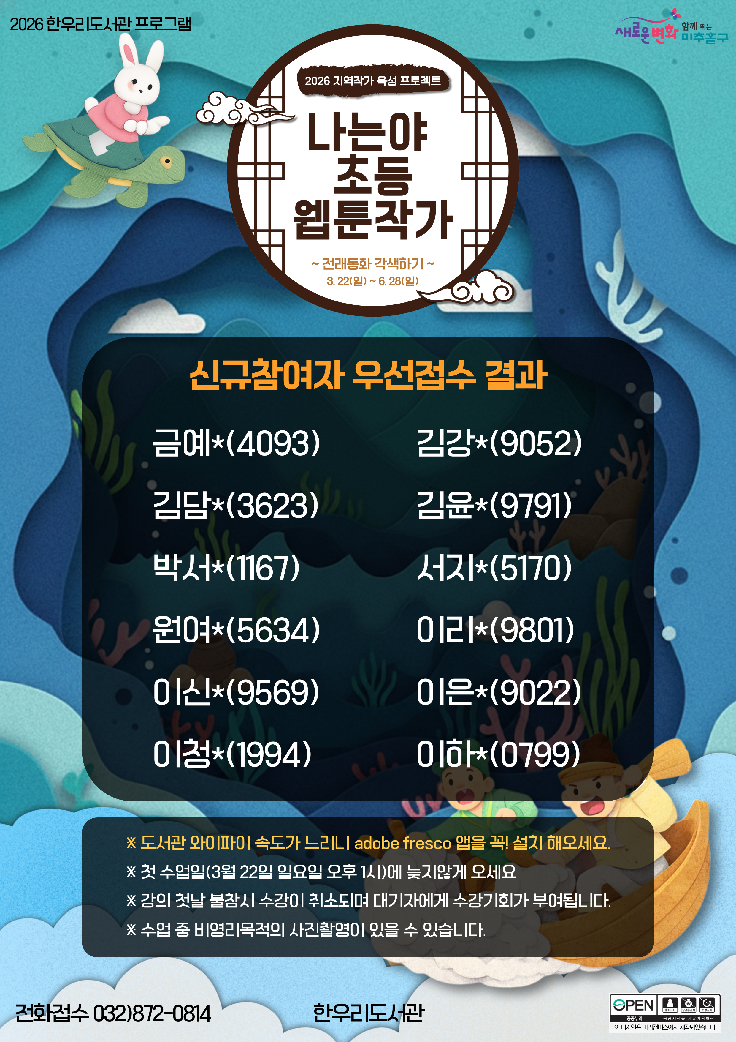 [안내] 2026 [나는야 초등 웹툰 작가] 우선접수 결과안내