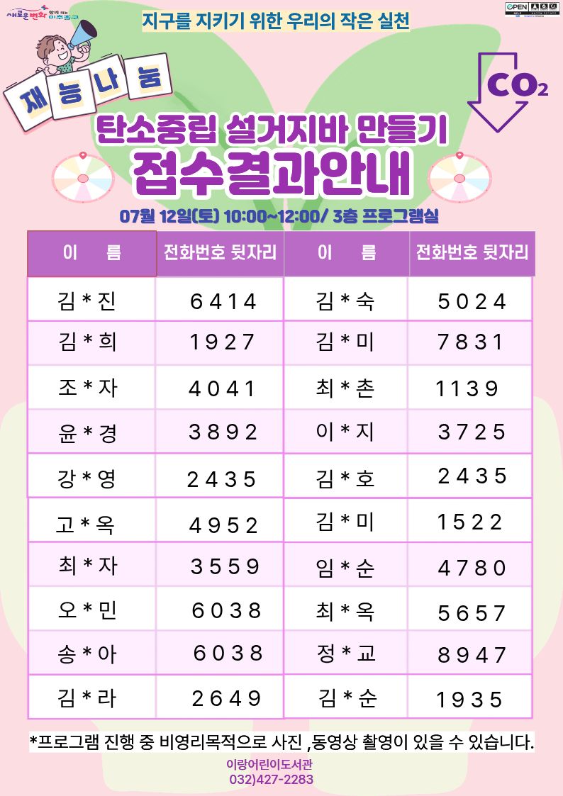 [안내] 2025 이랑도서관 <탄소중립 설거지바 만들기> 재능나눔 프로그램 접수결과 안내