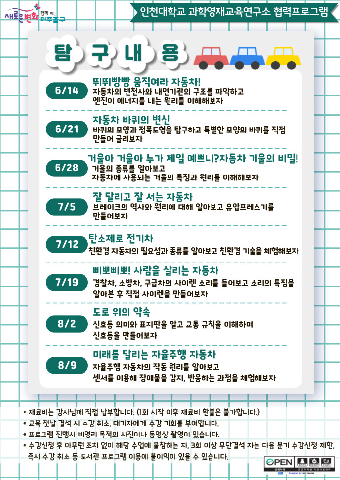 -접수 시, 미추홀구립도서관 정회원 여부와 연락처 확인 바랍니다.(프로그램 안내 및 재료비 입금 관련 안내 sms 발송)