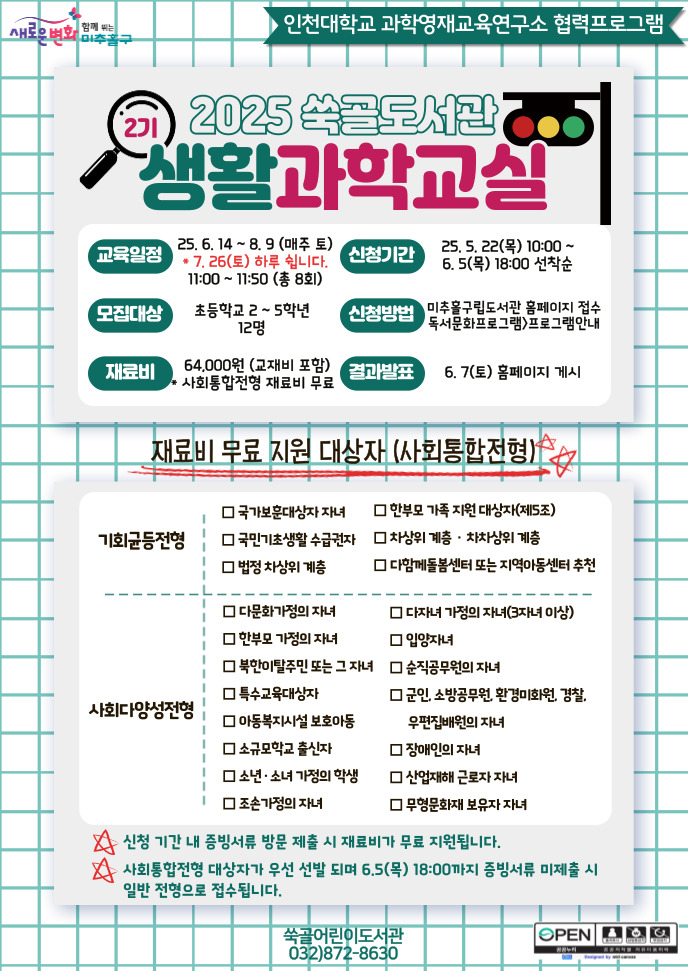-대상자: 인천 미추홀구 거주자 및 도서관 회원 초등학생 2 ~ 5학년