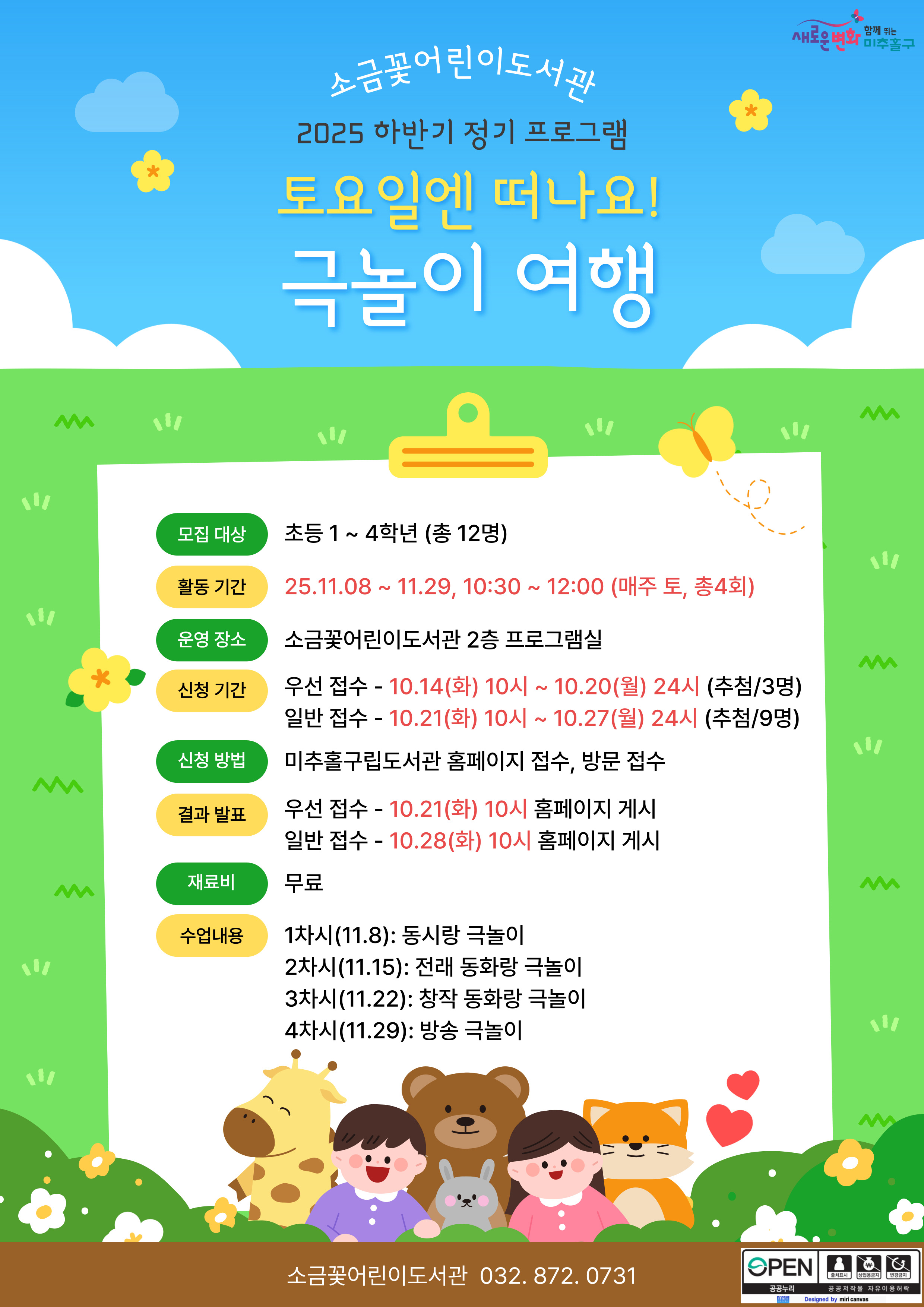 [일반접수] 2025 하반기 정기 프로그램 <토요일엔 떠나요! 극놀이 여행> (9명 추첨) |