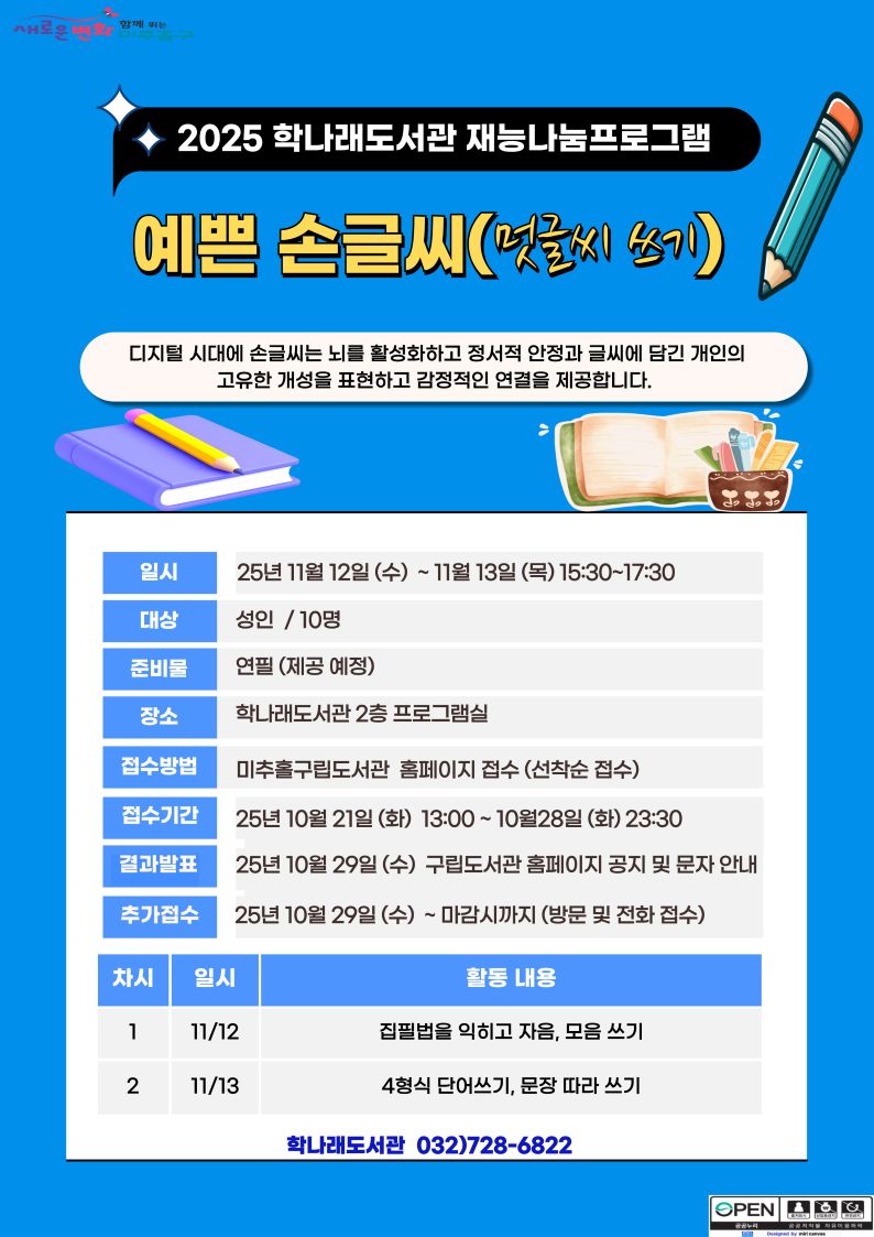 2025 재능나눔프로그램 <멋글씨 쓰기> (선착순) |
