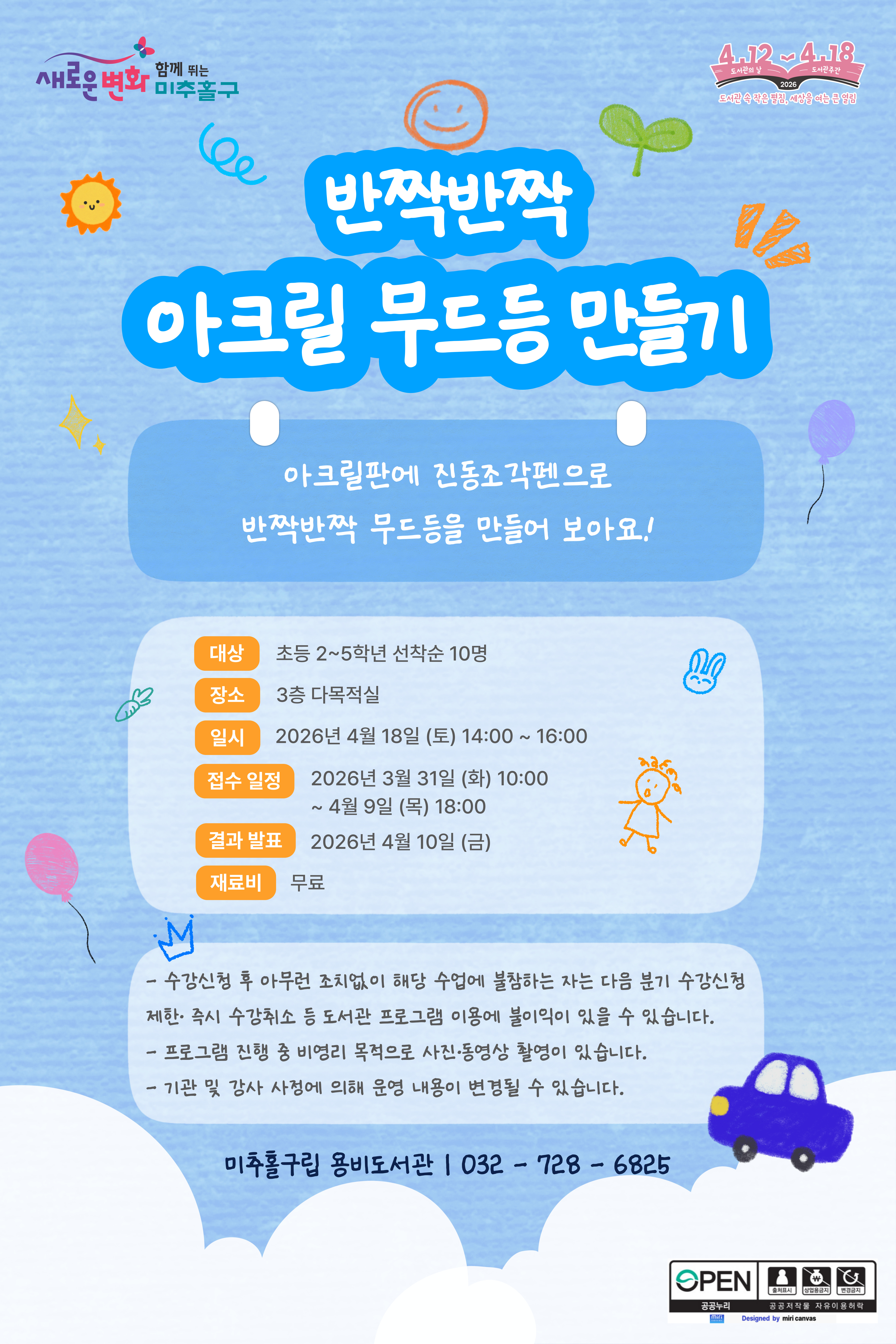 [2026 도서관주간] 반짝반짝 아크릴 무드등 만들기 |