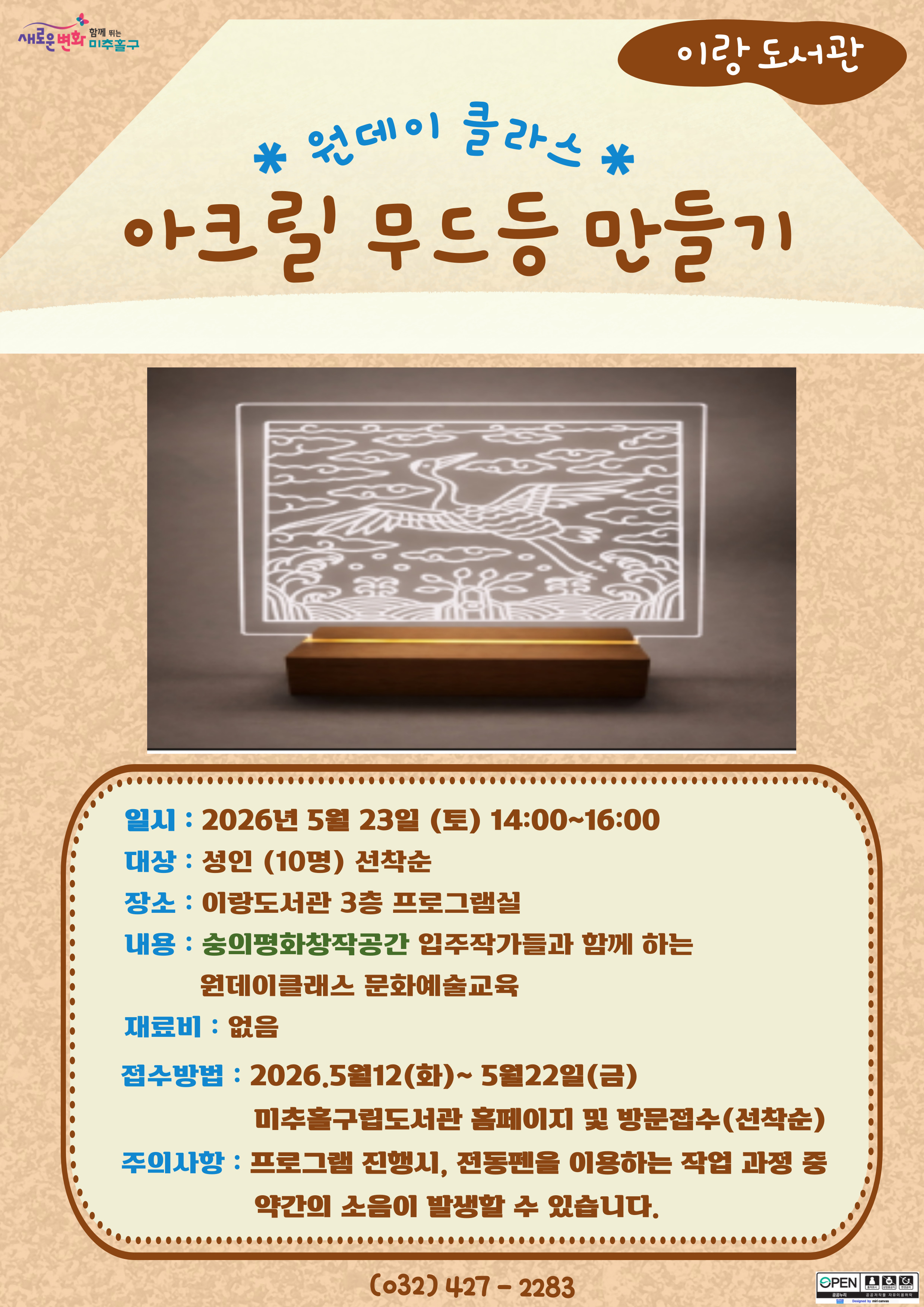 *미추홀구립도서관 홈페이지 -> 독서문화프로그램 -> 프로그램안내 -> 이랑도서관